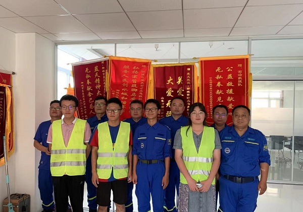 实践队员与蓝天救援队队员合照 孙向彪摄