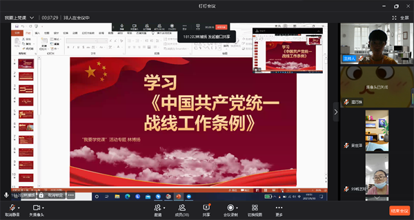9月30日,beat365官方网站学生党支部于线上开展以《中国共产党统一战线工作条例》为主题的专题学习会,支部全体党员参加此次会议,会议由郑薇同志主持。