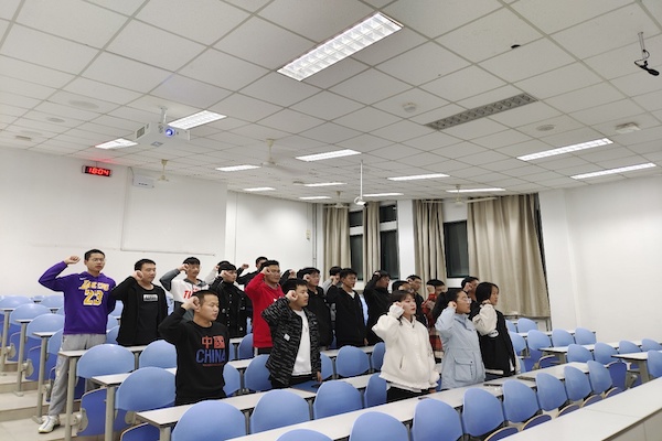 活动伊始,团支书李佳带领全体学生深入领会中国共产党带领人民不懈奋斗的光辉历程和伟大成就,领会伟大建党精神的深刻内涵和时代价值,并以明确时代使命为目的带领学生观看学习习近平总书记的会议讲话。习近平总书记勉励青年团员要主动向党员标准看齐,牢记初心使命,坚定理想信念,艰苦奋斗。随后,为进一步加深对伟大建党精神的了解,进行“你画我猜”游戏环节,学生据所供特征及所具优秀品质,回答相对应党员榜样姓名,该环节充分调动每个学生的积极性,现场气氛活跃。紧接着,在总结学习的交流环节,学生赵世超表示:“作为新时代青年要切实担负起时代赋予的责任和使命,不负时代,不负韶华。”交流结束,教室内响起了一致掌声。活动最后,全体成员热情饱满,庄严肃立,重温入团誓词,再次发出“请党放心,强国有我”的青春誓言。