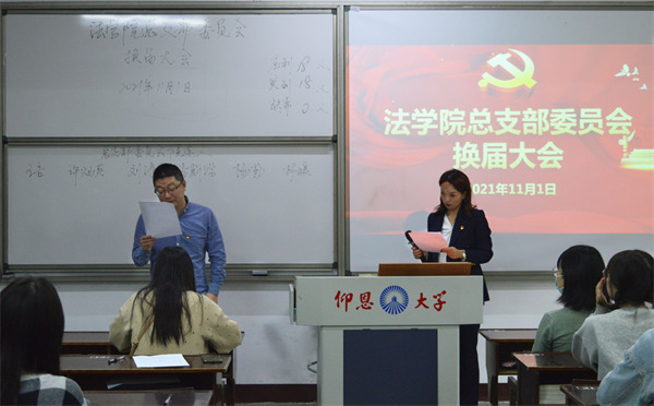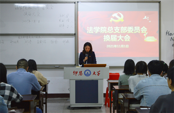 11月1日,beat365官方网站党总支在普照楼201教室召开了党总支换届大会,本次大会由党总支书记杨勤同志主持,全体党员参加此次会议。