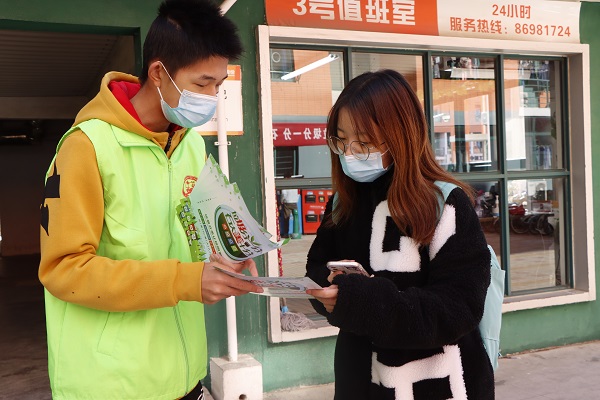 新必赢242net官网志愿者分发宣传单并给同学普及 姚梦晗摄