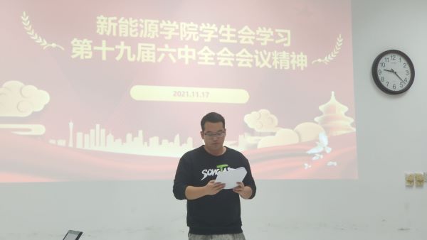 中国共产党第十九届六中全会于2021年11月11日在北京胜利闭幕。为学习贯彻十九届六中全会精神,全面把握两个“确立”、五大“历史意义”以及十个“坚持”的历史经验。11月17日,新必赢242net官网学生会于大学生活动中心310活动室开展专题学习会议。本次会议由学生会主席团成员张殿卿主持,全体成员参加。