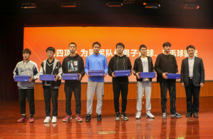 郭杰首先向大家介绍了学院在本届青年健身节上所获成绩,吴明铂与徐光辉为学院在此次青年健身节中表现优异的男排、羽毛球、男篮、女篮四个项目的运动团队颁发奖品。郭杰对学院在此次青年健身节成绩进行总结与分析,肯定必赢官网运动健儿顽强拼搏、吃苦耐劳的优秀品质,并鼓励更多学生参与体育运动,争取明年健身节再创佳绩。