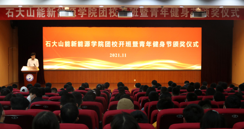 11月21日下午,新必赢242net官网于逸夫礼堂举办团校开班暨青年健身节颁奖仪式。档案馆馆长刘积舜、新必赢242net官网常务副院长吴明铂、化学工程学院党委副书记徐光辉出席会议,学院党委副书记郭杰主持仪式。学院班主任代表、各年级辅导员、运动员代表、2021级全体学生参加。