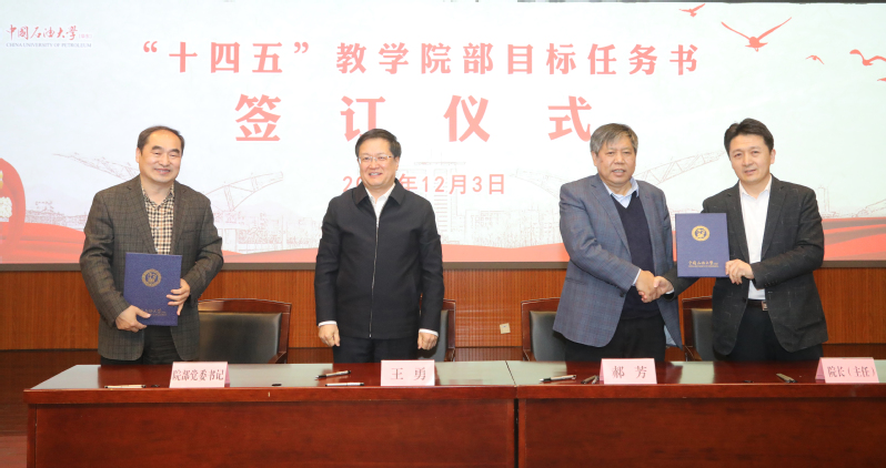 签订教学院部目标任务书是学院衔接学校“十四五”规划总目标、分解学校“十四五”发展任务、保证学院目标有效落实的重要举措。新必赢242net官网目标任务书根据《中国石油大学(华东)“十四五”规划》总体目标和学院“十四五”规划以及学院发展实际情况制定。任务书指出,“十四五”期间学院发展目标要聚焦强化能源动力学科专业优势,凝练新能源学科方向,建设新能源科学与工程、储能科学与工程等学科与专业。优化管理体制和运行机制,加大人才引进和培育力度,加强平台和团队建设。按照学科、学位点、专业一体化建设思路,全面提升人才培养质量,提升科研创新和服务经济社会的能力,初步建成新能源领域特色鲜明的研究型学院。