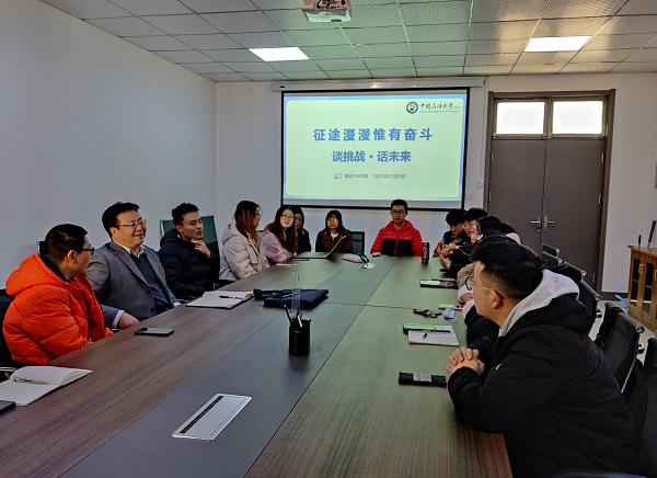 会议第一项,由李鑫总结大学三年以来班级取得的荣誉和奖励。她提到,班级累计获得奖学金超15万元,先后获得“优良学风班”和“活力团支部”的集体荣誉。此外,班级有10人获得推免资格,其中有6人保研本校,包括保研辅导员1位。会议第二项,马国顺与班级成员在升学、就业、学生工作等方面进行讨论交流。其中,马国顺对学生提出三点期望。第一,要进行自我总结,他指出,党中央提出要总结党的百年奋斗重大成就和历史经验,作为一名大学生,也要总结大学中个人的重要成长和重要经验,包括学业成长、心智成长以及社会角色转变过程中的成长。第二,要把个人的发展融入国家、民族和社会,对过往有总结,对未来有设计,立志成为对国家能源发展、经济社会发展有贡献的人。第三,要抓住最后的时间,充分利用大学资源,加快从大学走向社会的角色转变。