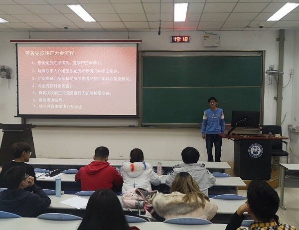 12月4日,学院能动本科生第一党支部在讲堂群西廊301教室召开支部大会讨论贺炯府、王硕硕两位同志转为正式党员的问题。会议由党支部书记曾伟同志主持,党支部全体学生党员参加本次会议。