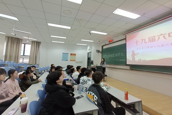 活动伊始,王嘉怡首先介绍了十九届六中全会会议的相关知识:中央委员会全体会议由中央政治局召集,每五年举办七次会议,本次全会主要是习近平主席作的工作报告。指出本次会议将围绕党的十九届六中全会的会议召开背景、召开重要意义、会议议程、会议看点以及为何要总结党的百年奋斗的重大成就和历史经验这五个方面带领支部团员青年深入理解党的百年奋斗的光辉历程。然后王嘉怡为与会学生总结了党的百年奋斗重大成就和经验,呼吁与会学生跟着党的方向走,坚持党的路线。余志全学生表示,党的十九届六中全会回顾了百年大党的风雨征程,全面总结了党一路取得的重大成就与历史经验。面临新时代、新格局、新征程,作为新时代的中国青年、材料青年,当以家国为己任,立大志、明大德、成大才、担大任,将青春热血挥洒在祖国最需要的地方。他的发言赢得了一阵掌声,各支部成员也都表示将来要积极向党组织靠拢。