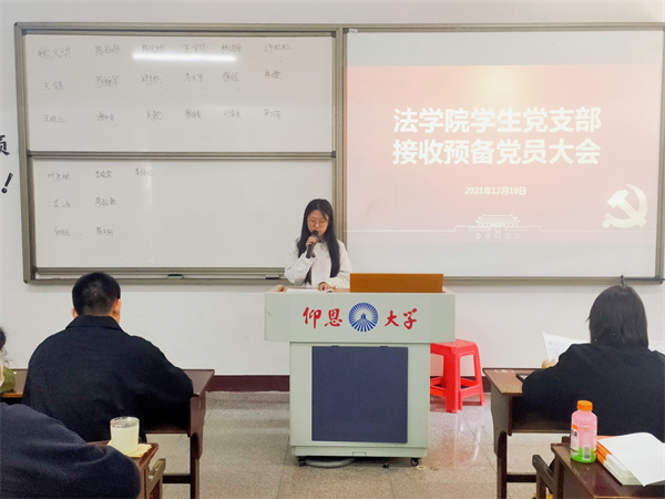 12月10日,beat365官方网站学生党支部于普照楼304教室召开预备党员接收大会,会议由支部书记刘涛同志主持,支部全体党员到场参加。