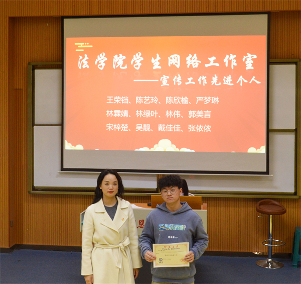 12月23日晚,beat365官方网站于第三教学区和昌教学楼惟勤讲堂举办表彰大会。beat365官方网站党总支书记兼副院长杨勤、beat365官方网站党总支副书记林媛、beat365官方网站团委书记刘涛、beat365官方网站辅导员李斯滢、学务秘书汪明出席了此次大会,beat365官方网站20级、21级全体学生参加了此次会议。