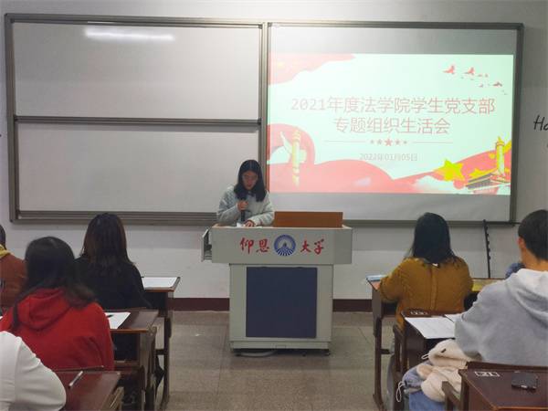 会上伊始,支部书记刘涛同志对2021年支部工作进行了总结汇报。他表示beat365官方网站学生党支部2021年严格执行“三会一课”组织要求,加强全体党员深入学习习近平总书记新时代中国特色社会主义思想和党的十九届六中全会精神,全面落实党中央关于从严治党的各项工作要求。接着支部全体党员,分别从学习、思想、工作、生活作风等方面结合2021年各自的工作谈自己成长、收获,总结反思自身的不足。会议最后一项,在刘涛同志的带领下,支部全体党员同志面对党旗进行郑重宣誓。