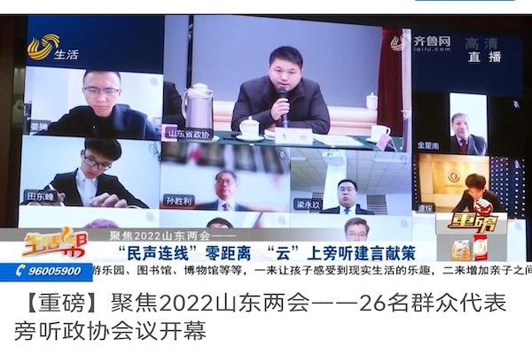 1月22日上午,山东省政协十二届五次会议在济南隆重开幕。综合年龄、职业、参政议政表现等条件,全省共有26名群众代表列席此次大会。必赢官网环保设备工程1901班学生田东峰作为山东省政协办公厅和共青团山东省委联合推选的5名青年代表之一、青岛市唯一大学生青年代表光荣列席会议并参与座谈交流,将团队提案在会上分组讨论和大会发言,将新能源学子的声音带入山东两会。