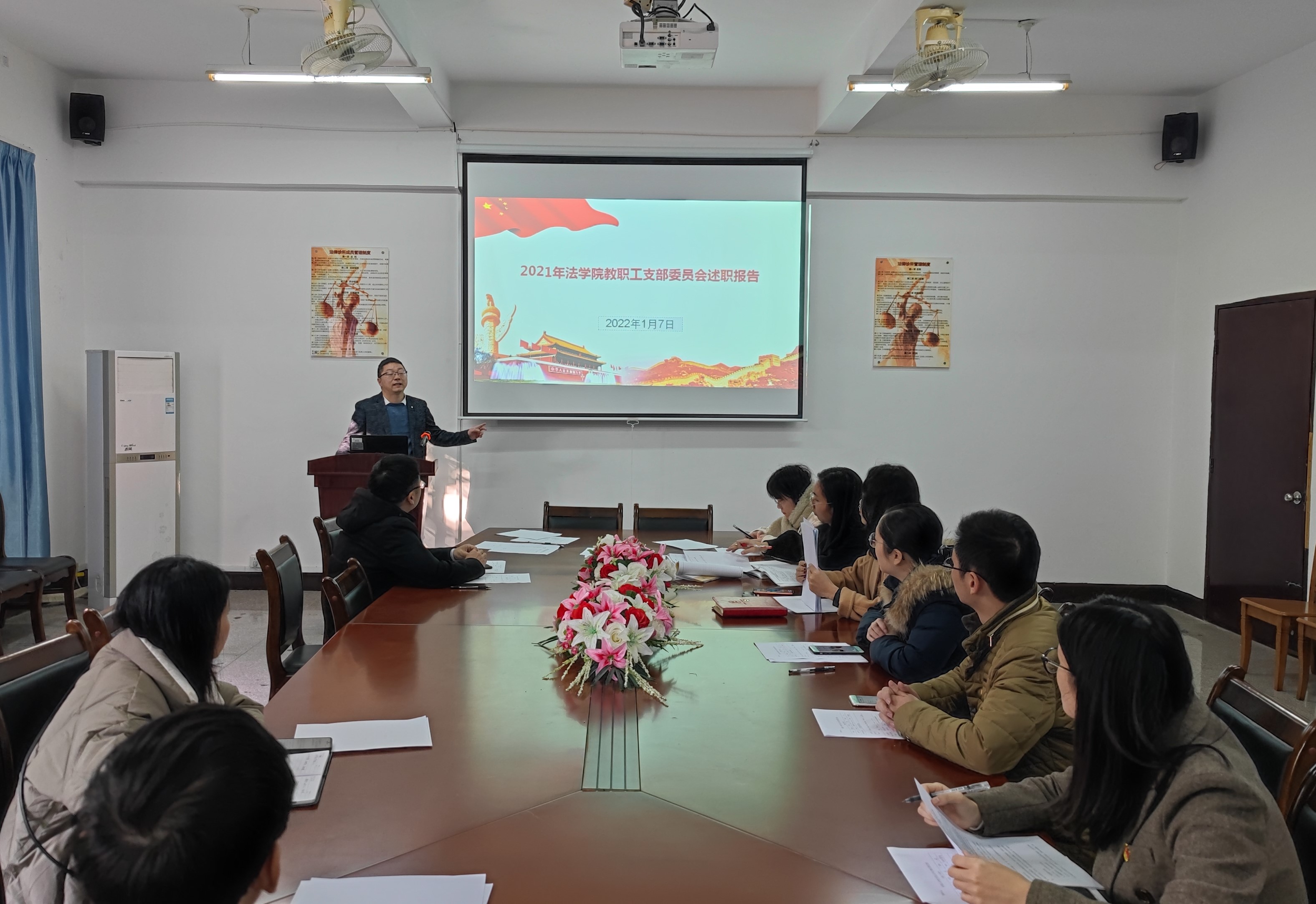 1月7日下午,beat365官方网站党总支于仰恩大学第三校区普照教学楼法律诊所召开2021年度基层党支部述职会议,beat365官方网站全体教师党员参加了此次活动,会议由beat365官方网站党总支书记兼副院长杨勤主持。