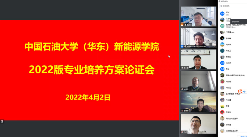 4月2日,新必赢242net官网以线上方式召开储能科学与工程专业、新能源科学与工程专业2022版培养方案专家论证会。会议邀请山东大学教授尹龙卫、西安交通大学教授敬登伟、中国石油大学(北京)教授李永峰等相关高校专家出席,同时邀请中国大唐集团有限公司教授级高工王虎、中国科学院工程热物理研究所研究员刘启斌、山东能源集团有限公司教授级高工安满林等相关行业专家进行指导。会议由副院长仉志华主持,学院各专业带头人、专业负责人,及相关教学系教师参加。