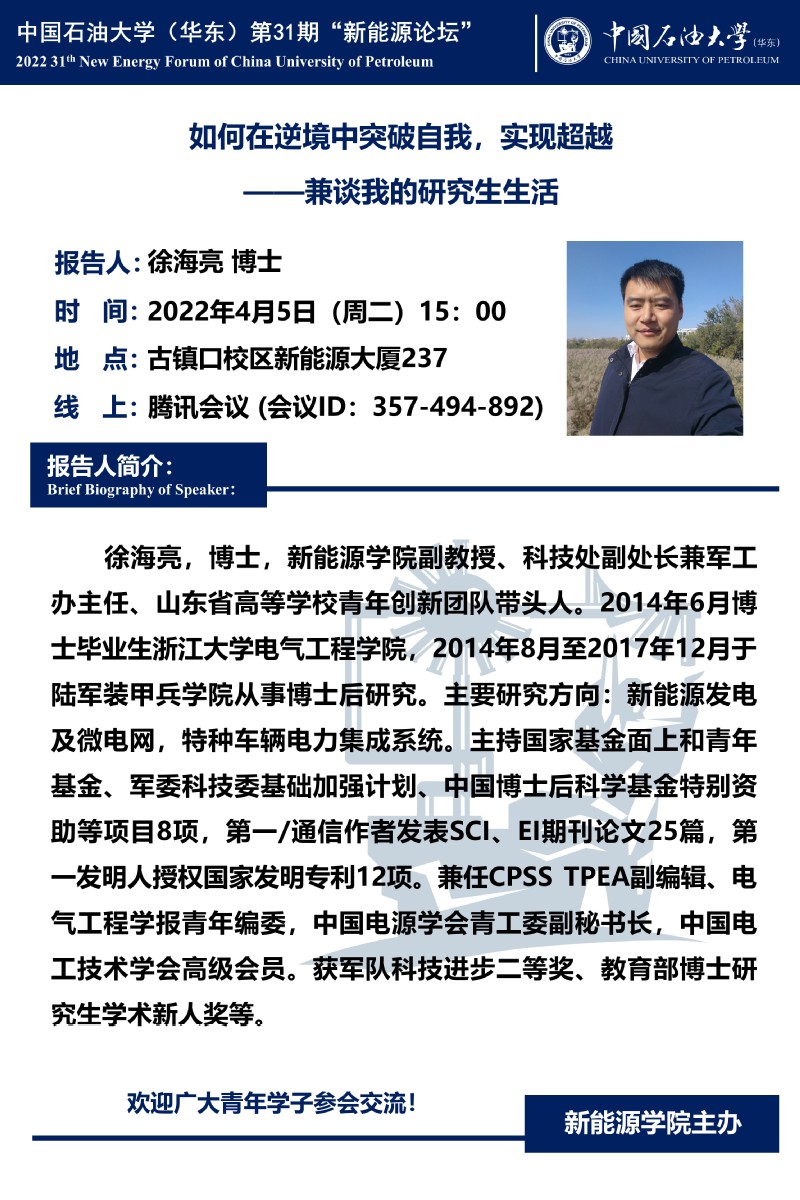 中国石油大学(华东)第31期“新能源论坛” 通知