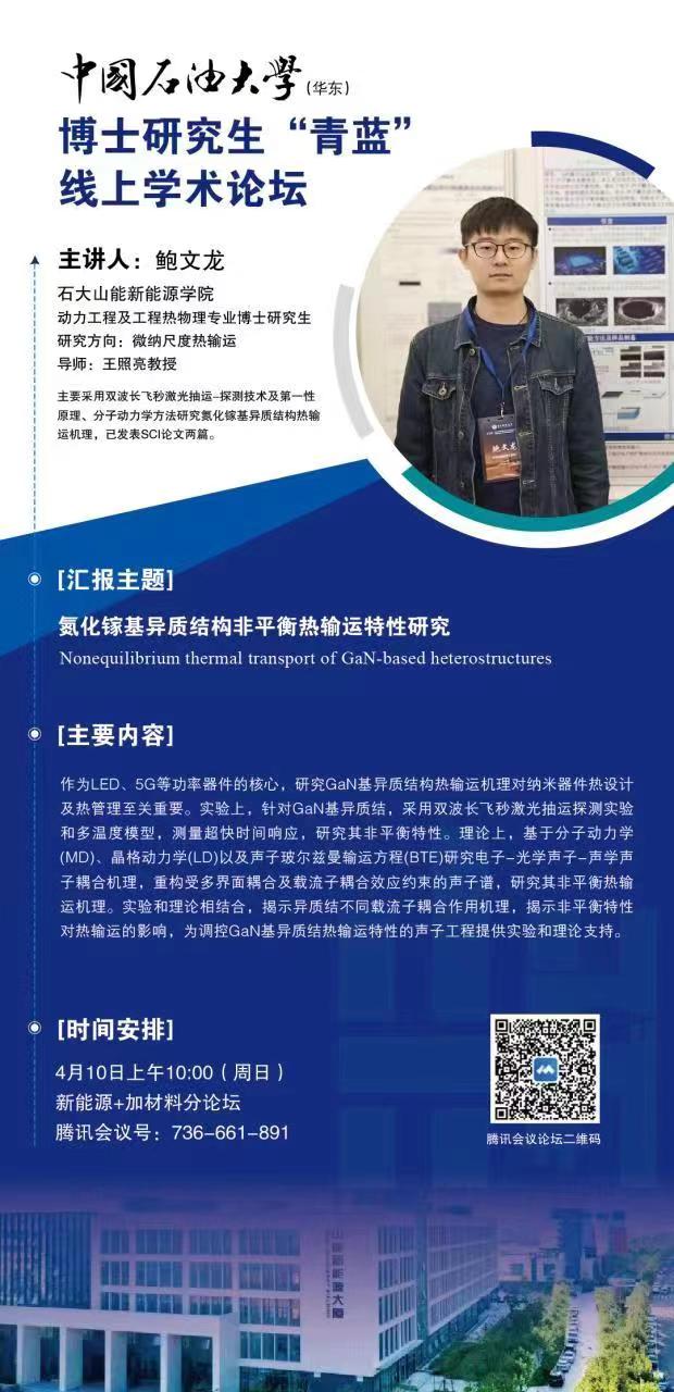 中国石油大学博士研究生“青蓝”线上学术论坛-“新能源+新材料”分论坛-鲍文龙