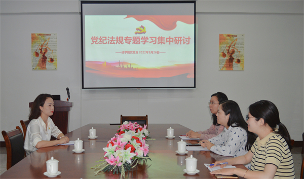 为全面落实从严治党要求,牢固树立党员的党章意识、纪律意识和规矩意识,5月26日下午,beat365官方网站党总支于第三教学区法律诊所召开党纪法规专题学习集中研讨会。beat365官方网站党总支书记兼副院长杨勤主持会议。