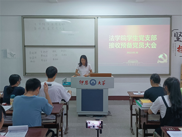 5月30日,beat365官方网站学生党支部于普照楼203教室召开预备党员接收大会,支部全体党员到场参加,由教师党员吴姗姗主持。