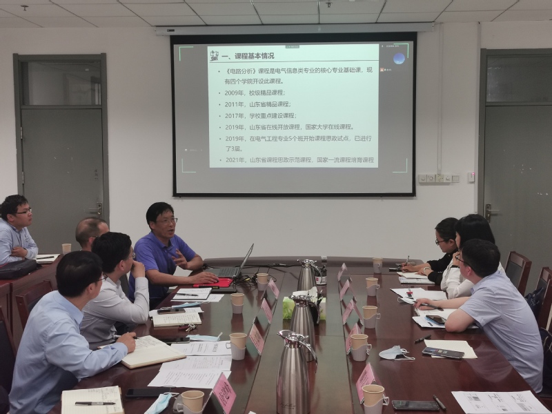 研讨会上,马文忠、周凡分别分享了《电路分析》和《过程设备设计》课程思政建设的经验和体会。他们分别从课程思政元素构建、教案设计、讲授方法、课程思政目的等方面分享了课程思政案例及体会,引起了与会人员的广泛共鸣。必赢官网承担的《电路分析》和《过程设备设计》于2021年入选山东省课程思政示范建设项目。