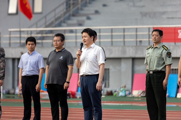 “听吧新征程号角吹响,强军目标召唤在前方……”全团齐唱《强军战歌》迎接前来慰问的各位领导。吴明铂向全团致以问候,并简单介绍了学院的发展定位。他指出,学校对新必赢242net官网的发展抱有重大期望,目前学院处于两校区办学的状态,非常重视新能源人才的培养,希望学生们在各位教官的指导督促下,认真对待军训,高质量完成军训课程,通过军训增强体质、磨练意志,培养团结协作精神,加强同学之间的友谊。
