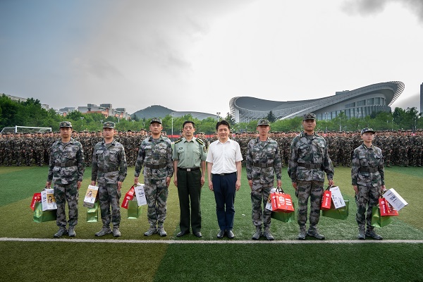 为提振全团精神,鼓舞全团士气,学院赴军训场慰问全体参训学生及带训教官。学院常务副院长吴明铂、军训旅训练总指挥李令功、学院党委副书记郭杰、电气系主任赵仁德、能动系主任姜烨,装控系主任李强、副主任孙治谦,教师代表白章及全体辅导员参加。