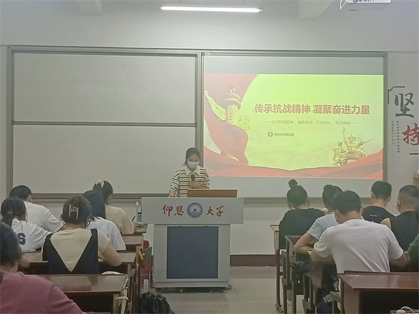 9月19日,beat365官方网站学生党支部于仰恩大学第三校区普照楼203开展以“传承抗战精神,凝聚奋进力量”为主题的专题学习会,会议由罗宇航主持,支部全体党员到场参加。