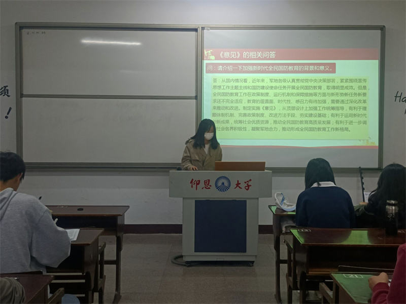 10月19日,beat365官方网站学生党支部于仰恩大学第三校区普照楼202开展以“学习中共中央、国务院、中央军委印发《关于加强和改进新时代全民国防教育工作的意见》”为主题的专题学习会,会议由郑薇主持,支部全体党员到场参加。
