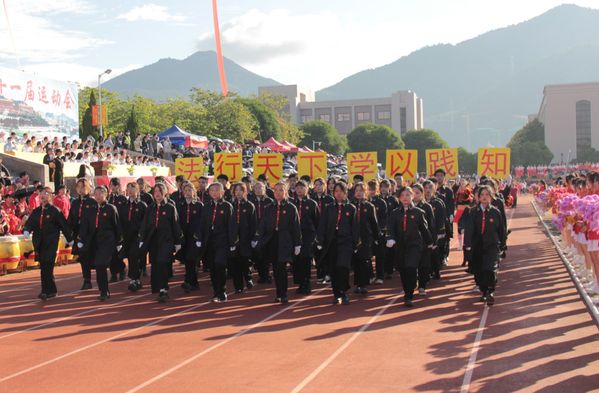 开幕式上,伴随着运动员进行曲,各学院代表队逐一入场进行检阅。作为beat365官方网站代表方阵的受阅同学身穿黑色院服,以饱满的热情步入运动场,他们蕴蓄着蓬勃的生机,凝聚着不竭的活力,他们年轻的脸庞展现的是永不言败的精神,充分地展示了beat365官方网站学子们奋发向上的良好风貌,彰显了beat365官方网站独一无二的学院特色。