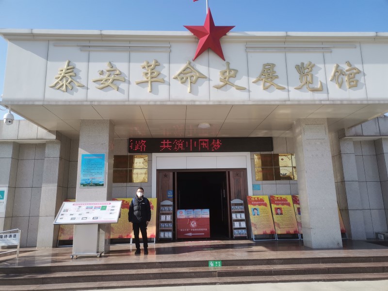参访伊始,任会豪查阅相关历史资料,对泰安的地理位置、党史、革命史进行了简要的了解,并依次参观了泰安革命史展览馆、革命烈士纪念碑、革命烈士陵园。其中,展览馆门前陈列有当代道德模范事迹,在参观泰安革命史展览馆内各设施时,任会豪学习和了解了新泰党组织建立、发展、改革、完善的详细历程,鲁宝瑛、尹鹏武等革命先辈的事迹和展览的书籍、衣物等革命先辈遗物背后所蕴含的意义和精神。展览馆内出口处还设有留言牌,记录了参观者对革命先辈的留言,表达了对于革命先辈的敬佩和感激之情。随后,任会豪来到革命烈士纪念碑前,阅读碑文,了解革命先烈的事迹,感受革命意志和奉献精神。革命烈士陵园内的墓碑排列整齐,道路两旁种植有成列的松树,松树旁分布有绿化带。任会豪表示,道路干净整洁,墓碑、树木一眼望去整齐划一,给人以庄严肃穆的感觉。参访结束后,任会豪表示:“我们今天的幸福生活,都是革命先辈以青春和生命拼搏、斗争而来的,因此我们更应该不忘历史、牢记使命,勇担时代责任,为国家富强、民族复兴奉献自己的一份力量。”