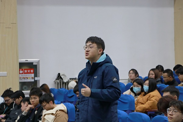 巩亮结合自身经历,以“担当能源使命,服务能源发展”为主题,通过学院概况、科研团队、专业发展、互动交流四个部分为2020级学生进行讲解交流。会议伊始,巩亮对2022年研考情况进行分析,并结合学位点建设、师资队伍、基金情况等方面介绍学院基本情况。随后,巩亮结合新必赢242net官网各科研团队的研究方向与学生进行交流,并鼓励学生们积极参与科研活动。在专业发展方面,巩亮结合“双碳”背景下的新能源发展问题分析各专业未来前景,并对学生们提出殷切期望,呼吁学生们树立远大理想、甘于埋头苦干、厚植家国情怀,做值得尊敬的石大人。在之后的现场提问环节中,巩亮认真听取并详细回答了现场学生关于未来专业发展方面的提问。