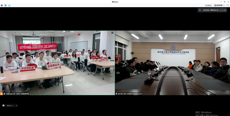 活动伊始,陶志雄介绍了本次活动举办的目的,并对哈尔滨工程大学的老师与学生表示欢迎。随后,石大电气(卓越)2007班周星辰、哈工大自动化类16班胡楚笛分别从学校、专业以及支部建设情况三个方面进行详细介绍,陶志雄结合两校古镇口校区建设作出补充,并提出希望日后两支部能够保持密切联系,结合专业特长开展更多活动。最后,结合两个支部的介绍,针对党的二十大精神的学习、科技赛事、学习方法、活动开展等方面,双方进行了交流研讨,相互学习、优势互补。活动结束后,电气(卓越)2007团支部魏雅琪表示:“我们青年更应该明确对自身的要求,不忘初心砥砺前行,怀抱梦想又脚踏实地,提升自身素养,认真学习知识,让学习成为推动自身发展的内在动力。”