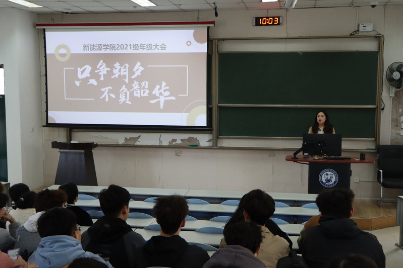 为让学生对未来有更好的想法与规划,解决学生对未来发展方向的疑惑。必赢官网于4月1日在东环召开“只争朝夕,不负韶华”年级大会。大会由学院2021级辅导员倪萌主持,能源与动力工程和新能源科学与工程专业的全体学生参与。