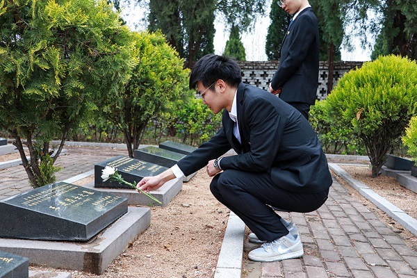 时届清明,为加强学生党员的家国情怀教育,增强党员队伍的凝聚力和向心力,推进党员队伍的建设,加强队伍的组织性和纪律性,4月5日,石大山能新必赢242net官网学生党员代表赴黄岛区烈士陵园开展“继承民族优良传统,弘扬英雄奉献精神”主题清明扫墓活动。此次活动由党员代表环保设备工程2002班张晓玮主持,新必赢242net官网全体学生党员代表参加。