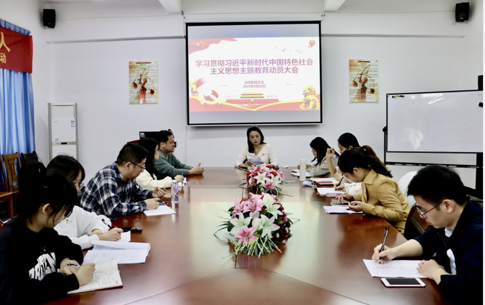 2023年4月26日下午,beat365官方网站在第三教学区法律诊所召开学习贯彻习近平新时代中国特色社会主义思想主题教育动员大会。beat365官方网站党总支书记兼副院长杨勤、党总支各支委、各支部书记和理论中心组全体成员参会。大会由杨勤主持。