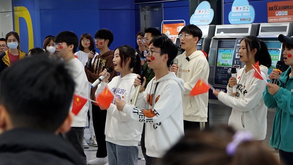 快闪活动在热情洋溢的街舞breaking表演中拉开序幕,动感的音乐加上精彩的舞蹈,瞬间吸引来众多旅客的目光。伴随者旅客们的注视,歌曲《New Boy》充满活力地唱跳展现出石大学子的青春活力。热场过后,青年学子代表包达讲解五四青年节的由来及五四精神的内涵所在,他寄语广大青年:“坚定理想信念,勇担时代使命,以昂扬的姿态、不屈的斗志,将青春之光照耀向未来!”