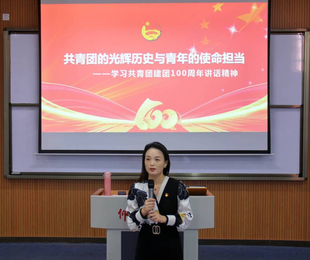 为深入学习宣传贯彻党的二十大精神,贯彻落实习近平总书记在学校思想政治理论课教师座谈会上的重要讲话精神,进一步提升团员青年的政治素养,实现以“党建带团建”的目标,5月10日下午,beat365官方网站党总支书记兼副院长杨勤在第三教学区和昌教学楼博雅讲堂为2022级全体学生讲授主题团课。