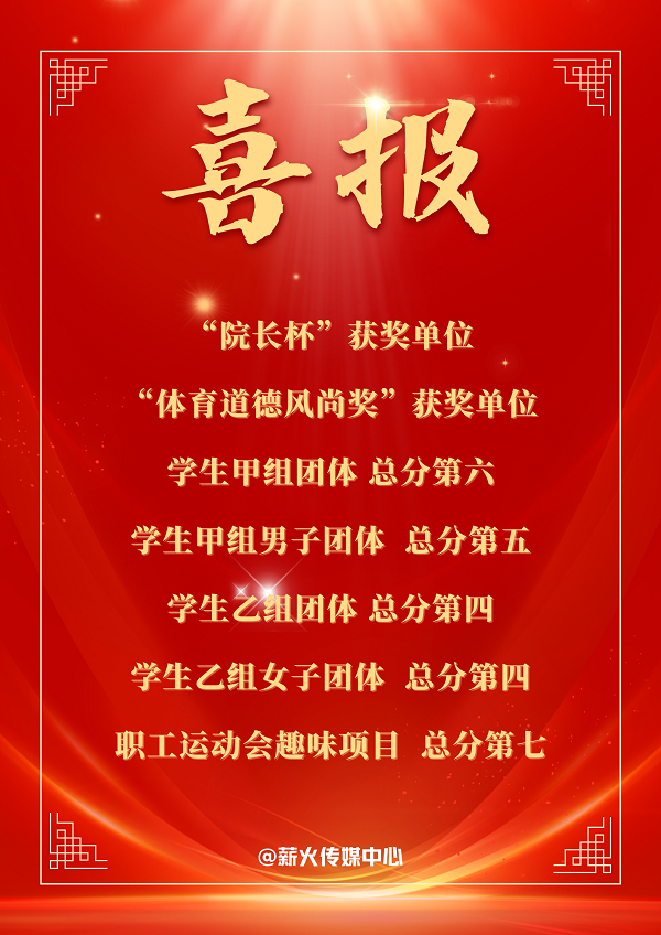 汗水炼就荣誉,拼搏书写辉煌。此次校运会中多项成绩的取得有助于增强集体荣誉感、提高学院凝聚力,展现新必赢242net官网的风采;必赢官网运动健儿们在运动场上挥洒汗水,书写青春与使命,展现出“团结拼搏,争创佳绩”的运动精神,用青春和运动为建校七十周年献礼。