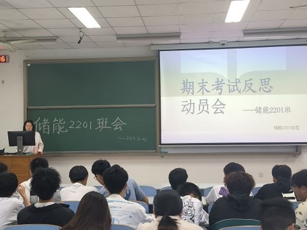为总结班级近期各项工作情况,分析班级现阶段存在问题,提高班级成员学习积极性,备战期末考试,11月26日,储能科学与工程2201班于南教119教室举行班级工作总结暨期末动员大会。会议由班长郭航恺及学习委员陈雪主持,储能2201班全体学生参加。