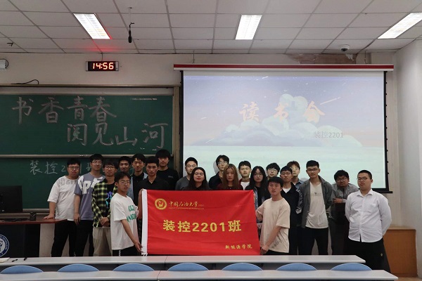 活动伊始,刘学思介绍活动的目的以及安排。随后,刘学思介绍班级各成员所推荐的书籍,例如:《红星照耀中国》《钢铁是怎样炼成的》《宋史▪文天祥传》《活着》等许多书籍作品,并且进行书籍知识快问快答,宣传红军的长征精神、五四运动精神、社会主义核心价值观的意义等中国共产党革命的精神。除此之外,林可怡进行《风会记得一朵花的香》片段内容的朗诵,声情并茂地展现出书籍所带来的魅力,把大家带入到书籍温馨的画面之中。随后,刘学思和李浩共同朗诵诗歌《石油师的旗帜》,慷慨激昂的朗诵体现出70年前毛主席带领八千名石油子弟兵无坚不摧的意志。紧接着,为迎接70周年校庆,刘学思呼吁大家主动学习石油大学校歌,提高对于校史的了解。活动最后,装控2201全体学生分享自己在团日活动中所学到红色精神、五四精神以及对于书籍的感触。