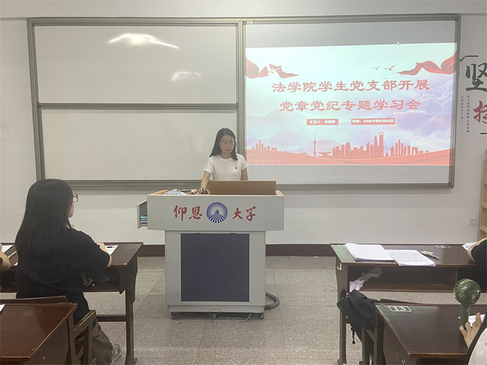 6月12日,beat365官方网站学生党支部于普照楼203开展党章党纪专题学习会。本次会议由支部书记吴姗姗主持,支部全体学生党员参加。