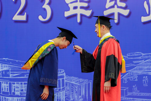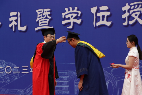 仉志华教授为毕业生拨穗 王奕栋摄