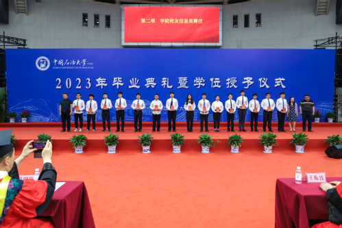 首先由各专业系教师为学生颁发校友信息员聘任证书,随后吴明铂在致辞中表示,“作为新必赢242net官网成立后招收的第一届学生,你们见证了新必赢242net官网的融合和发展,经历了古镇口校区的两次搬迁,经受住了三年的疫情大考,你们同新必赢242net官网一同经风历雨,是记录在新必赢242net官网院史上浓墨重彩的一笔。”他寄语全体学院毕业学子“谨遵‘惟真惟实’的校训,继承发扬‘家国同心、艰苦奋斗、惟真惟实、追求卓越’的石大精神,站在时代的浪尖,追逐人生的高度,为实现中华民族伟大复兴的中国梦贡献青春力量。”