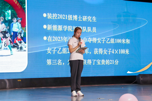 过去一年学院在第十八届青年健身节和学校2023年运动会上分别取得了优秀成绩,羽毛球队和女子排球队在青年健身节中勇夺冠军,男子排球队和女子篮球队双双获得亚军,田径运动员夏睿追平女子100米项目记录,学院再次斩获院长杯。成绩的取得离不开每一位师生运动员的努力,学院短跑队队员、2021级博士研究生夏睿作为优秀运动员代表在发言中表示,十分荣幸能够代表学院在田径场上拼搏,每一次成绩的取得都离不开老师同学的支持。原学院女排队队长、2023届本科生杨涵予在发言中谈到,“夺得女排冠军既是突破又是挑战,感谢学院的培养与肯定,在未来比赛中女排队伍将再接再厉,为学院赢得更多荣誉。”随后穆海涛宣读学院体育表彰决定,马文忠、郭杰、徐光辉分别为在健身节和运动会中表现优异的师生运动员颁发“十佳教工运动员”和“十佳学生运动员”证书。