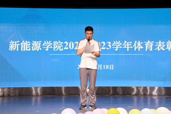 为奖励先进、树立榜样,增强学院体育工作氛围,6月18日晚,学院在唐岛湾多功能活动厅召开2022—2023学年体育表彰大会,学院工会主席马文忠、学院党委副书记郭杰、原2019级辅导员徐光辉、团委书记穆海涛、各年级辅导员以及师生运动员代表参加。