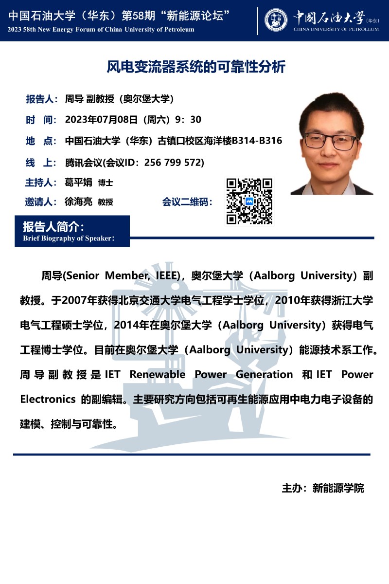 中国石油大学(华东)第 58 期“新能源论坛”通知