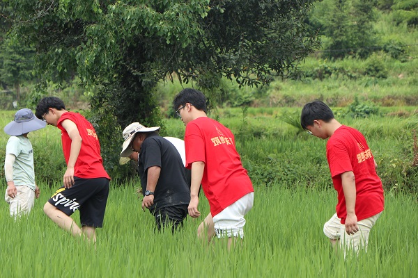 实践队员体验清除稗草 王雅楠摄