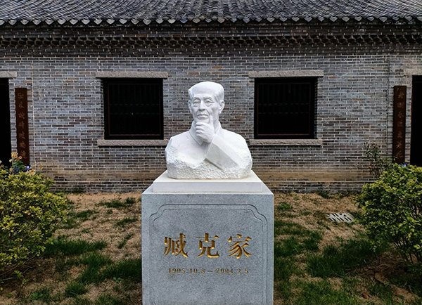 参访伊始,讲解员带领马越参观尽臧克家故居并讲解故居建筑的布局与意义,通过讲解马越了解到:故居内有包括臧克家纪念馆在内的房屋共35间,内部以陈设实物和图片资料为主,反映了这位诗坛泰斗对祖国与人民的真挚情感。接着,讲解员带领马越进入纪念馆内参观臧克家遗物与各界知名人士的题词,她特别强调:“臧克家先生是闻一多先生的学生,是一位伟大的诗人,更是一位忠诚的爱国主义者。他用文字表达对祖国的热爱,影响了一大批知识分子投身于爱国行列。”随后,马越观看了臧克家生平影片并进行记录,深入了解了臧克家先生光辉的一生,学习先生的伟大爱国精神。最后,马越在臧克家雕像前献上鲜花,表达对臧克家先生的悼念与敬仰。