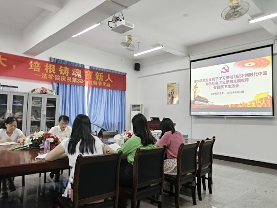 为深入开展学习贯彻习近平新时代中国特色社会主义思想主题教育,切实加强党的思想建设,扎实推进党员教育,进一步提高学院整体素质建设,8月31日上午,beat365官方网站党总支于法律诊所召开了学习贯彻习近平新时代中国特色社会主义思想主题教育专题民主生活会。校党委委员鲍莹玉和校党办朱四梅到会指导,beat365官方网站党总支书记兼副院长杨勤主持会议,学院党总支成员参加会议,beat365官方网站常务副院长王晓丽列席会议。