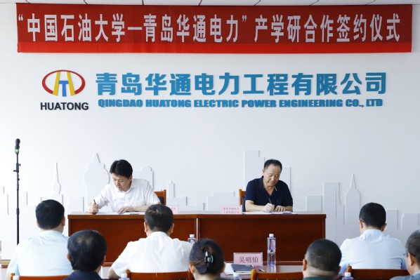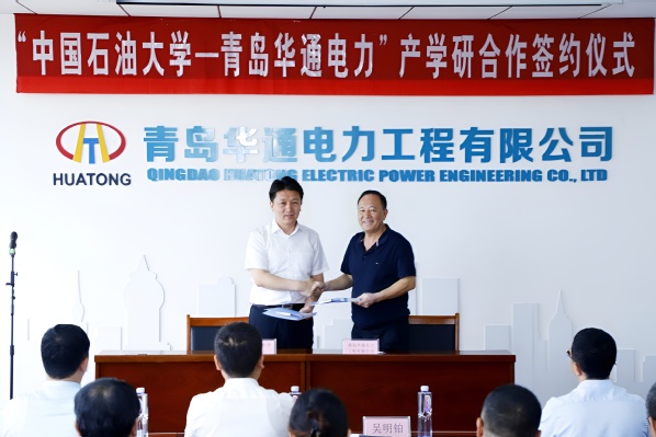 党的二十大报告提出:“必须坚持科技是第一生产力、人才是第一资源、创新是第一动力。”为促进政产学研紧密结合,打造“校企地”协同创新人才培养体系,9月13日,中国石油大学(华东)新必赢242net官网与青岛华通电力工程有限公司举行产学研合作签约仪式。滨海街道党工委副书记、办事处主任沈久波,党工委副书记李新,青岛华通电力董事长郝玉亮,学校古镇口校区综合办主任刘涛、学院常务副院长吴明铂出席仪式。