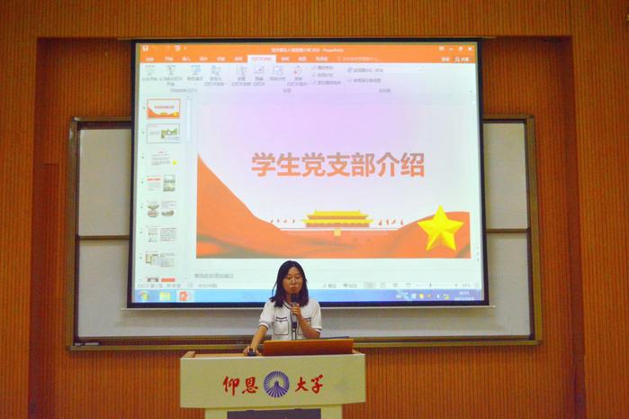 此后,吴姗姗对学生党支部进行专门介绍,学生党支部结合专业特色,坚持“学习型、服务型、创新型”三型党组织内涵,同时并针对入党流程和考核标准为新生进行了详细介绍,鼓励同学们坚定理想信念,积极向党组织靠拢,为新生日后评奖评优以及入团入党提供了目标与方向。
